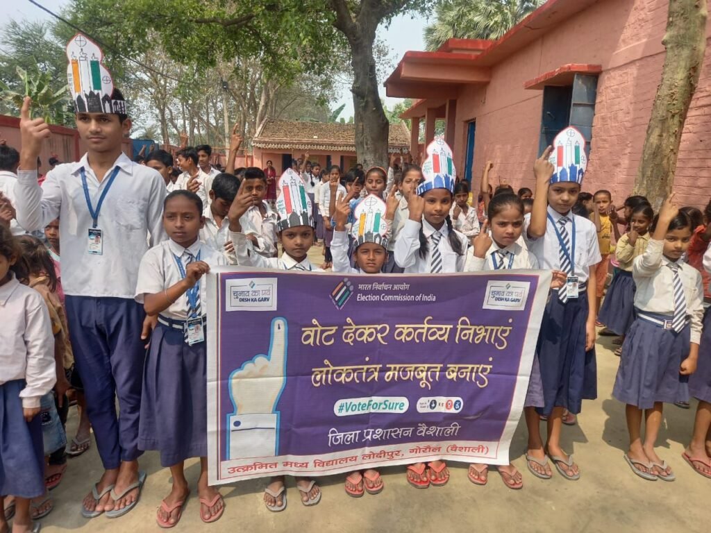 लोकसभा चुनाव 2024 में शतप्रतिशत मतदान हो सके इसको लेकर स्कूली बच्चे भी मतदाता जागरूकता अभियान के जरिए आम मतदाताओं को मतदान करने को लेकर प्रेरित कर रहे हैं ।इसी क्रम में प्रखंड क्षेत्र के उत्क्रमित मध्य विद्यालय लोदीपुर गोरौल के बच्चों ने चेतना सत्र के दौरान मतदान के महत्व विषय पर आयोजित चर्चा में भाग लिया। शिक्षक धर्मेंद्र कुमार के नेतृत्व में आयोजित चर्चा के दौरान बच्चों ने मतदाता कौन होंगे और मतदान कैसे करेंगे यह भी जाना। इस दौरान शिक्षक धर्मेंद्र ने बच्चों को बताया कि परिवार के वैसे लोग जिनकी उम्र 18 वर्ष या 18 वर्ष से अधिक हो गई है और जिनका नाम मतदाता सूची में शामिल है वह मतदान कर सकते हैं ।सभी बच्चों ने अपने-अपने परिवार के मतदाताओं को मतदान के लिए न केवल तैयार करने की बात कही बल्कि मतदान के दिन सबसे पहले मतदान करने को लेकर मतदान केंद्र तक अपने दादा दादी ,माता पिता ,भाई भौजाई को लेकर जाने की बात की कही ।इस मौके पर बच्चों ने मतदाता चिन्ह को प्रदर्शित करने वाले कागज के मुकुट का भी प्रदर्शन किया। चार्ट पेपर की मदद से बच्चों द्वारा बनाए गए मुकुट पर तिरंगे के रंग में बने हाथ की अंगुलियों के साथ तर्जनी उंगली को प्रदर्शित किया। इस पर मतदान के बाद लगाए जाने वाले अमिट स्याही भी लगा है ।इस दौरान बच्चों ने “पहले मतदान फिर जलपान”, ” वोट देकर कर्तव्य निभाएं लोकतंत्र को मजबूत बनाएं “, “जब मतदाता जाएगा अपने बूथ तभी लोकतंत्र होगा मजबूत” जैसे नारे भी लगाए। चर्चा में वर्ग आठ की छात्रा सलोनी प्रिया, सुप्रिया, प्रियंका, अमीता, ऋषि, गुलशन सहित स्नेहा, प्रियांशु, रिद्धि, अनामिका, अभिजीत,सत्यम, पायल सहित अनेक बच्चों के साथ शिक्षक सुनील कुमार ठाकुर, आनंद कुमारी, ज्योति भारती, रिंकू कुमारी देवी, विपिन कुमार, रसोईया महादेव राय, चंदेश्वर राय आदि शामिल थे।