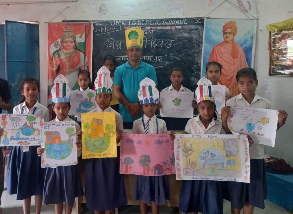 विश्व पृथ्वी दिवस के अवसर पर गोरौल प्रखंड क्षेत्र के उत्क्रमित मध्य विद्यालय लोदीपुर गोरौल पर आयोजित कार्यक्रम में पौधारोपण, पेंटिंग्स, स्लोगन लेखन सहित “प्लास्टिक बनाम ग्रह” विषय पर परिचर्चा का आयोजन किया गया ।परिचर्चा में मुख्य रूप से विद्यालय के सभी शिक्षक और मिशन दक्ष के बच्चों सहित वर्ग 6,7 एवं 8 के छात्र  छात्राओं ने भाग लिया। विश्व पृथ्वी दिवस 2024 के थीम” प्लास्टिक बनाम ग्रह “पर चर्चा का प्रारंभ करते हुए विद्यालय के शिक्षक व भारत स्काउट गाइड यूनिट वैशाली के सहायक जिला सचिव धर्मेंद्र कुमार ने कहा कि प्लास्टिक अपनी खूबियों के कारण हमारे दैनिक जीवन का अभिन्न हिस्सा बन गया है ।लेकिन सिंगल यूज प्लास्टिक एवं पॉलीथिन का अत्यधिक उपयोग ने आज पृथ्वी को खतरे में धकेल दिया है । इसके कारण मानव जीवन के साथ-साथ जलीय जीवन एवम पर्यावरण पर भी भारी संकट छाता जा रहा है ।अगर समय रहते सिंगल यूज प्लास्टिक एवं पॉलीथिन के इस्तेमाल को बंद नहीं किया गया तो इसके गंभीर दुष्परिणाम भुगतने के लिए हमें तैयार रहना होगा ।शिक्षक धर्मेंद्र ने बताया कि प्लास्टिक को नष्ट होने में सैकड़ों वर्ष लग जाते हैं। इसका अनुमान इसी से लगाया जा सकता है कि एक प्लास्टिक की पानी की बोतल को नष्ट होने में लगभग 450 वर्ष लगते हैं ।हालांकि बिहार सरकार ने सिंगल यूज प्लास्टिक एवं पॉलीथिन पर प्रतिबंध लगा दिया है । लेकिन इसका अधिक प्रभाव पड़ता नहीं दिख रहा है ।वहीं भारत स्काउट गाइड यूनिट भी अपनी तरफ से सिंगल यूज प्लास्टिक एवं पॉलीथिन की रोकथाम को लेकर समय समय जन जागरूकता अभियान चला रहा है। मौके पर बच्चों ने सिंगल यूज प्लास्टिक एवं पॉलीथिन के विकल्प के रूप में कपड़े का झोला, कागज का थैला वगैरह उपयोग किए जाने को लेकर पोस्टर के माध्यम से लोगों से अपील किया ।चर्चा में शामिल विद्यालय के प्रधानाध्यापक विनोद कुमार ने बच्चों को संबोधित करते हुए कहा कि प्लास्टिक का उपयोग बंद करने की शुरुआत हम सभी को खुद से करनी चाहिए। बाजार में सामान खरीदते समय घर से कपड़े का झोला लेकर जाना चाहिए। जब तक हम पूरी तरह सिंगल यूज प्लास्टिक का बहिष्कार नहीं कर देंगे तब तक आम लोगों से किए गए हमारे अपील का ज्यादा प्रभाव नहीं पड़ेगा ।कार्यक्रम के प्रारंभ में विद्यालय के रसोईया महादेव राय, शिक्षक धर्मेंद्र कुमार एवं छात्र दीपक कुमार के द्वारा विद्यालय प्रांगण में पौधारोपण किया गया। इस बीच बच्चों ने” सांसे हो रही है कम आओ पेड़ लगाए हम” का नारा भी दिया। पेंटिंग्स के माध्यम से बच्चों ने जल जीवन हरियाली की महत्ता वाले अनेक चित्रों को बनाकर प्रदर्शित । कार्यक्रम के दौरान विगत शैक्षणिक वर्ष में सिंगल यूज प्लास्टिक एवं पॉलीथिन की रोकथाम को लेकर विद्यालय स्तर 