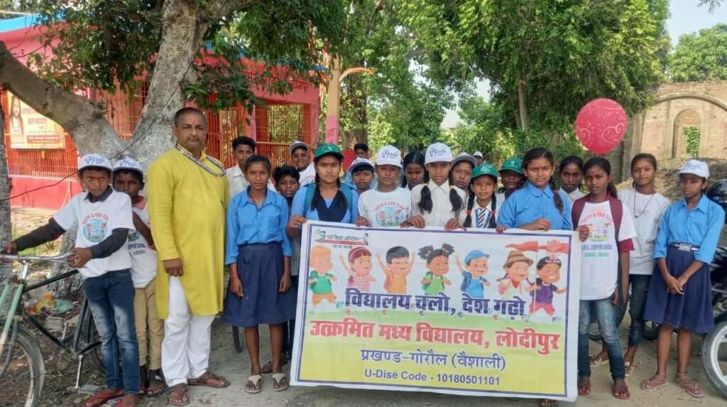 गोरौल प्रखंड क्षेत्र के उत्क्रमित मध्य विद्यालय लोदीपुर के यूथ एवं यूको क्लब के सदस्यों ने शुक्रवार को साइकिल रैली निकाली . रैली में “विद्यालय चलो देश गढ़ों अभियान चलाया”अभियान के अंतर्गत नए बच्चों का नामांकन और पूर्व से विद्यालय में नामांकित बच्चो का विद्यालय में शत प्रतिशत उपस्थिति को लेकर बच्चो में साइकिल से अभिभावक संपर्क अभियान चलाया गया. अभियान का नेतृत्व यूथ एवं यूको क्लब की सदस्य वर्ग वर्ग की छात्रा चांदनी कुमारी ने किया. इससे पूर्व विद्यालय के प्रधानाध्यापक विनोद कुमार ने साइकिल रैली को हरी झंडी दिखा कर रवाना किया. अभियान में शिक्षक धर्मेंद्र कुमार,विभा रानी,रिंकू कुमारी,ज्योति भारती के अलावा,निरेका कुमारी,चुलबुल कुमारी,गौरव कुमार,आदर्श कुमार,शिवम कुमार,स्नेहा कुमारी,अनमोल कुमारी,डौली कुमारी सहित दर्जनों बच्चे शामिल थे.