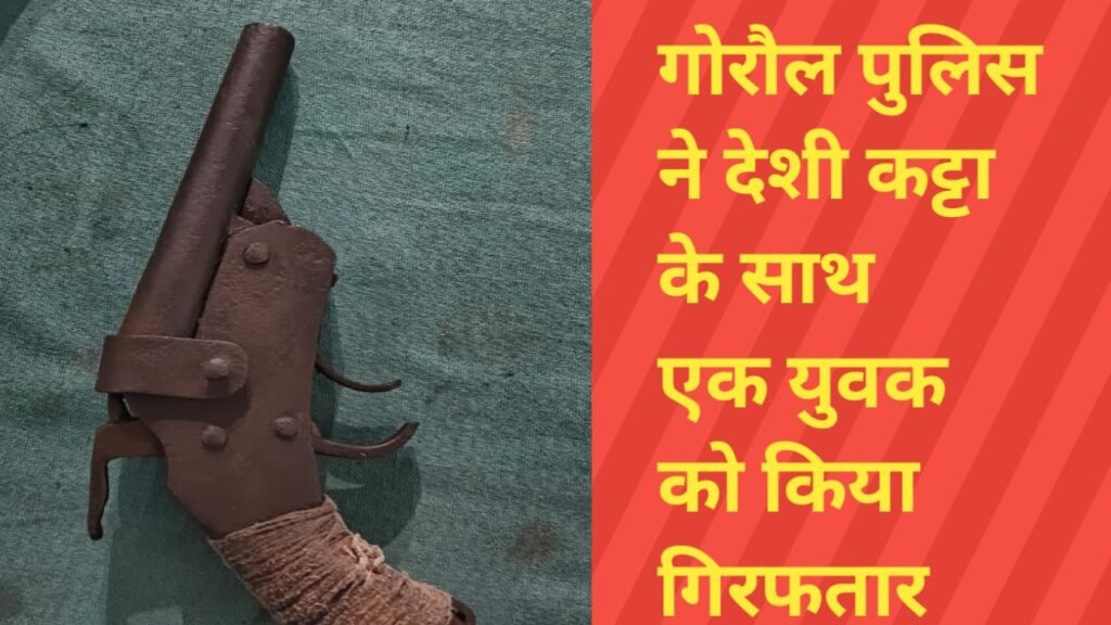 गोरौल थाना क्षेत्र के रसूलपुर कोरीगांव से बुधवार की देर रात्रि देशी कट्टा के साथ एक युवक को गिरफ्तार किया गया है. बताया गया है कि पुलिस को सूचना मिली कि व्हाट्सएप पर एक वीडियो वायरल हो रही है ,जिसमे एक युवक रिवाल्वर लहराते हुए दिख रहा है. वह युवक रसूलपुर कोरीगांव का रहने वाला है. थाने में पदस्थापित अवर निरीक्षक शैलेन्द्र कुमार ने पुलिस टीम के साथ रात्रि गश्ती में थे इसी बीच गोरौल थाना अध्यक्ष रौशन कुमार ने अवर निरीक्षक शैलेन्द्र कुमार को वायरल वीडियो की जानकारी दी जिसके आधार पर जब गाँव में छानविन किया तो पता चला कि युवक गाँव के ही स्वर्गीय प्रमोद कुमार सिंह के पुत्र विशाल कुमार है. जब उसके घर की तलाशी ली गयी तो युवक घर मे सोया हुआ था और बिस्तर के नीचे देशी कट्टा रखकर सोया हुआ था जिसे बरामद कर लिया गया. साथ ही मौके से उक्त युवक को भी गिरफ्तार किया गया.
