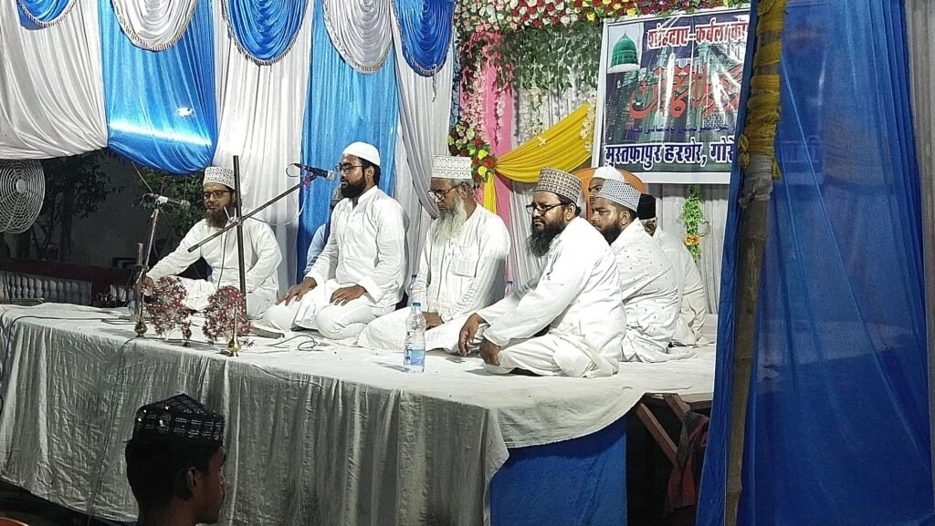 गोरौल प्रखंड में मुहर्रम को लेकर तैयारी शुरू हो गयी है. इसको लेकर जगह जगह कुरानख्वानी मिलाद किया जा रहा है वहीं मुस्तफापुर हरशेर में गुलाम रसूल शाह वारसी के मजार शरीफ पर मुहर्रम को लेकर गुरुवार को शोहदाए कर्बला कांफ्रेंस का आयोजन किया गया. जिसमें खतिब मौलाना कारी जावेद अख्तर फैजी , मौलाना हाशिम, मौलाना गुलाम मुर्तजा ,मौलाना नसीम अहमद, मौलाना शमीम अख्तर, नांत खां अनवारु हक ने मुहर्रम और इमाम हुसैन अलैहिस्सलाम के जिंदगी पर खिताब करते हुए बताया कि इमाम हुसैन जुर्म और नाइंसाफी के लिये लड़ते हुए कर्बला के मैदान में भुखे प्यासे अपने बहत्तर साथियों के साथ शहीद हो गये. इस, कांफ्रेंस के जरिए आम लोगों को बहुत कुछ सिखने का मौका मिलता है . कार्यक्रम में मो निजाम उर्फ परवेज, शमशाद अहमद, इम्तियाज अहमद, इरशाद अहमद, अंसार अहमद, फैज वारिस, मो जमाल, रजी रहमान सहित कई लोग उपस्थित थे. रिपोर्ट जाहिद वारसी