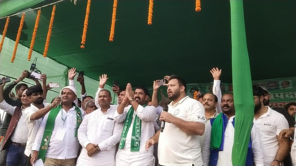 रविवार को बेलसर के ग्रामोदय हाई स्कूल अफजलपुर के मैदान में राजद द्वारा आयोजीत चुनावी सभा को सम्बोधित करते हुये विपक्ष के नेता तेजस्वी यादव ने ये बातें कही। मात्र चार मिनट के आपने सम्बोधन में उन्होंने कहा कि सरकार में आने के बाद एक वर्ष में एक करोड़ युवाओ को नैकरी दी जाएगी। माई -बहिन योजना के तहत प्रत्येक महिलाओ को 25 सौ रुपये प्रति महीने दिये जायेंगे। चुनावी सभा के मंच पर उपस्थित राजद प्रत्याशी अजय कुशवाह को विजयी बनाने का आग्रह जन समूह से किया।आयोजको द्वारा चुनावी सभा का समय दो बजे दिया गया था,लेकिन श्री यादव ढाई घण्टे बाद पहुचे। वीआईपी सुप्रिमो मुकेश सहनी के आने की सूचना दी गयी थी,लेमिन वे नहीं आसके।सभा को प्रमुख मुन्ना कुमार,मुखिया वीरेंद्र राय, रामाशीष राय सहित दर्जनों लोगों ने सम्बोधित किया।