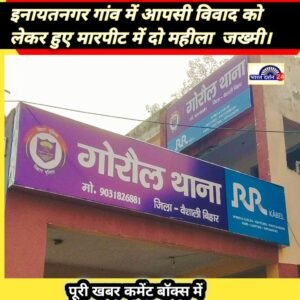 गोरौल थाना क्षेत्र के इनायत नगर गांव में आपसी विवाद को लेकर हुए मारपीट में दो महीला जख्मी हो गयी .सभी जख्मियों का इलाज़ सामुदायिक स्वास्थ्य केंद्र में कराया गया है . दोनों पक्षों ने थाने में अलग अलग प्राथमिक दर्ज कराया है. प्रथम पक्ष सजराना खातून ने द्वारा दर्ज कराई गई प्राथमिकी में आरोप लगाया है कि उसके बगलगीर प्रति दिन खेत में कचरा फेंकते हैं जब मैं इसका विरोध किया तो सभी ने लाठी डंडा से मारपीट कर बुरी तरह ज़ख़्मी कर दिया । इस मामले में मोहम्मद कयूम सहित चार लोगों को नामजद अभियुक्त बनाया गया है. वहीं दूसरे पक्ष की जलिना खातून के द्वारा दर्ज कराई गई प्राथमिकी में आरोप लगाया है कि गांव के ही कुछ लोग आ धमके और गाली गलौज करने लगे. मना करने पर मारपीट कर जख्मी कर दिया. इस मामले में मोहम्मद मुस्तकीम ,मुमताज बेगम, सहित पांच लोगों को नामजद अभियुक्त बनाया गया है. रिपोर्ट जाहिद वारसी