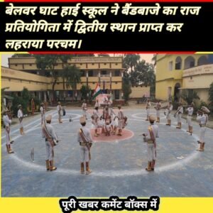 गोरौल प्रखंड स्थित आरपीसीजे उच्च माध्यमिक विद्यालय बेलवरघाट ने बिहार शिक्षा परियोजना की ओर आयोजित राज्य स्तरीय ऑनलाइन इन्टरस्तरीय बैंड प्रतियोगिता में दूसरा स्थान प्राप्त किया . विद्यालय के प्रभारी प्रधानाध्यापक अरविंद कुमार शरण ने सभी प्रतिभागियों को बधाईयां देते हुए कहा कि आप सबों ने बेहतर प्रदर्शन द्वारा राज्य में दूसरा स्थान प्राप्त कर विद्यालय का नाम रौशन किया है . बैंड टीम के एस्कॉर्ट शिक्षक उमेश कुमार प्रसाद सिंह ने कहा कि इस प्रतियोगिता में बच्चों ने अपने अनोखे प्रदर्शन से सबों का दिल जीता है . सभी प्रतिभागियों ने अनुशासन का परिचय देते हुए विभिन्न प्रकार के क्रियाकलाप की प्रस्तुति दी है. इसके अंतर्गत कदम ताल , फास्ट मार्च , स्लो मार्च, विभिन्न प्रकार की तालियां, एवं सारे जहां से अच्छा की धुन पर विभिन्न प्रकार के पिरामिड का प्रदर्शन किया. सभी प्रतिभागी सुसज्जित पोशाक में अपने वाद्ययंत्रों से मधुर धुन निकाल रहे थे ,जो सभी को अपनी ओर आकर्षित कर रहे थे. बैण्ड टीम के सदस्यों की सूची एवं भेजे गए वीडियो के माध्यम से मूल्यांकन उपरांत ब्रास बैंड टीम बालक वर्ग वैशाली को राज्य में दूसरा स्थान प्राप्त हुआ. इसके लिए विद्यालय परिवार की पूरी टीम काफी उत्साहित है . इस प्रदर्शन का राहुल कुमारी चौधरी द्वारा खूबसूरत वीडियो बनाया गया ,जिसे प्रदर्शन हेतु विभाग को भेजा गया था. ब्रास बैंड टीम के 27 सदस्यीय टीम में कृष्ण कुमार टीम लीडर, इसके अलावा साहिल कुमार, कुंदन कुमार ,आदित्य कुमार , चंदन कुमार ,आदित्य राज ठाकुर ,आदित्य कुमार , संतोष कुमार ,अभिनंदन कुमार ,अनिकेत राज , रौशन कुमार,आदर्श ठाकुर, आयुष राज ,सुजीत कुमार, सत्यम कुमार ,मनीष कुमार ,आयुष कुमार ,श्रीकांत, शिवा कुमार ,रवि किशन, अरविंद कुमार, आयुष रंजन ,राजेश कुमार ,सोनू कुमार, प्रियांशु कुमार एव सुशांत कुमार ने भाग लिया. रिपोर्ट जाहिद वारसी