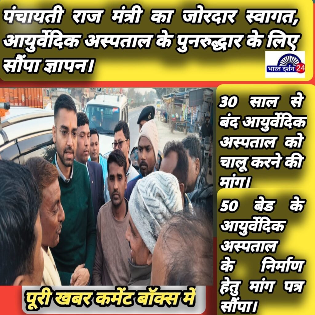 स्वागत कार्यक्रम के दौरान स्थानीय नागरिकों ने गोढ़िया चमन में जिला परिषद की खाली पड़ी डेढ़ एकड़ जमीन पर 50 बेड के आयुर्वेदिक अस्पताल के निर्माण हेतु मंत्री को एक ज्ञापन सौंपा। ग्रामीणों ने बताया कि यहां पहले से आयुर्वेदिक अस्पताल संचालित था, जो लगभग 30 वर्ष पूर्व बंद हो गया और अब वह खंडहर में तब्दील हो चुका है।