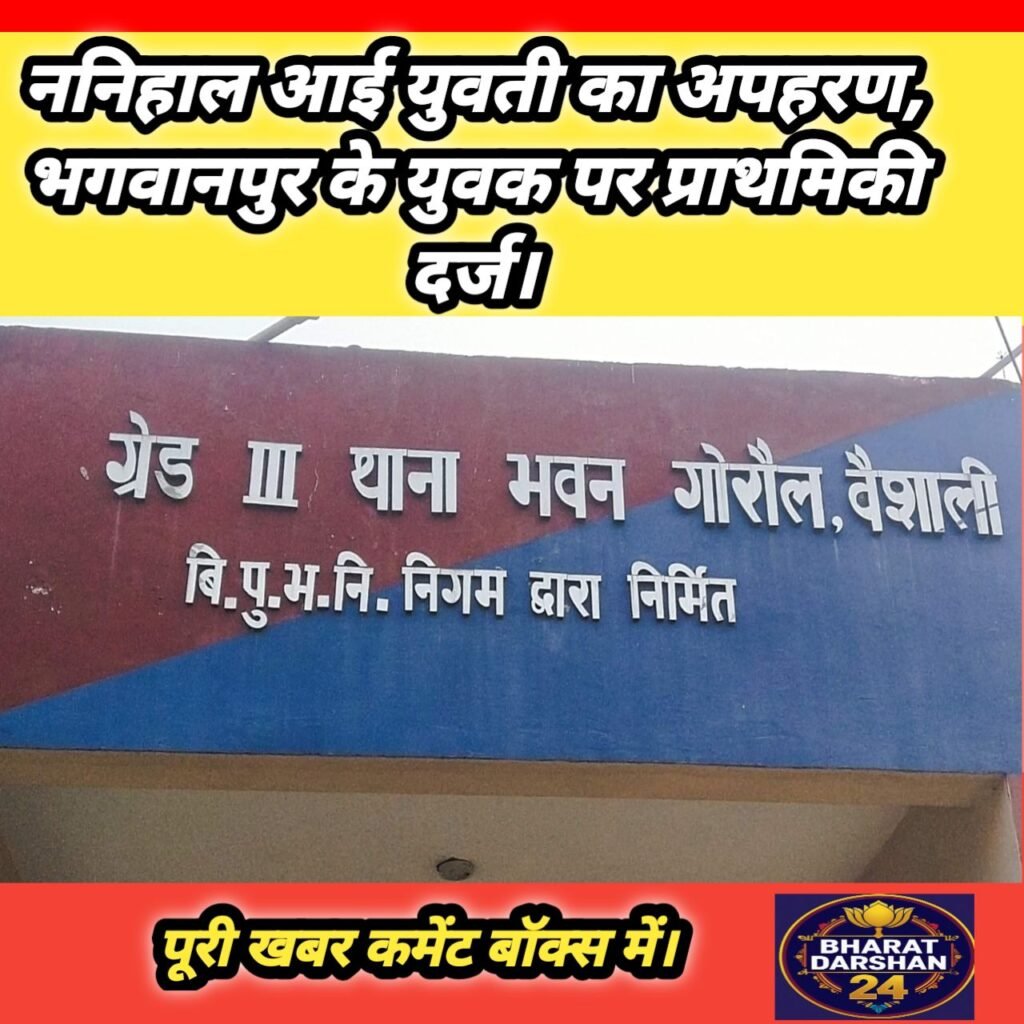 गोरौल (वैशाली): गोरौल थाना क्षेत्र के एक गांव में अपने ननिहाल आई एक युवती के संदिग्ध परिस्थितियों में गायब होने का मामला प्रकाश में आया है। इस संबंध में युवती के परिजनों ने थाने में अपहरण की प्राथमिकी दर्ज कराई है।