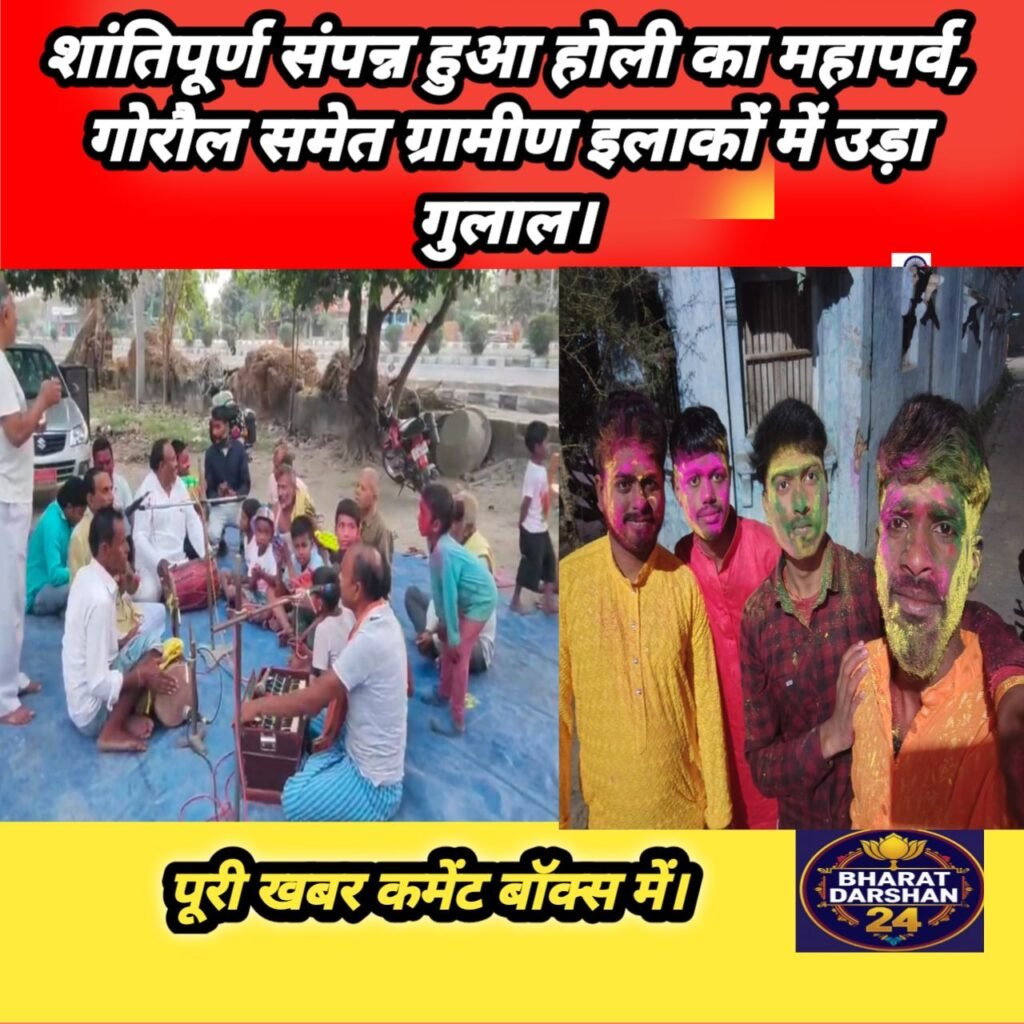 क्षेत्र के गोरौल गांव, कर्पूरी चौक, सोन्धो, अंधारिगाछी, कटरमाला, प्रेमराज, इनायतनगर, रामदासपुर, आदमपुर, गोढीया और बेलवर आदि गांवों में प्रेम एवं भाईचारे का यह पर्व पूरे परवान पर रहा। फागुन के इस मस्ती भरे माहौल में युवाओं और बुजुर्गों की टोलियां झाल, नगाड़े और डम्फ की थाप पर थिरकती नजर आईं। ग्रामीण अंचलों में पारंपरिक होली गीतों के साथ-साथ ‘जोगीरा’ के सुरों ने उत्सव के आनंद को दोगुना कर दिया। क्या बच्चे और क्या बुजुर्ग, हर कोई होली के चटख रंगों में सराबोर नजर आया। राहत की बात यह रही कि पूरे क्षेत्र में त्यौहार शांतिपूर्ण रहा और कहीं से भी किसी अप्रिय घटना की सूचना नहीं मिली। वहीं, सुरक्षा व्यवस्था को लेकर स्थानीय प्रशासन और पुलिस पूरी तरह चौकस दिखी। जगह-जगह पुलिस बल की तैनाती और गश्त के कारण लोग निर्भय होकर उत्सव मनाते दिखे।
