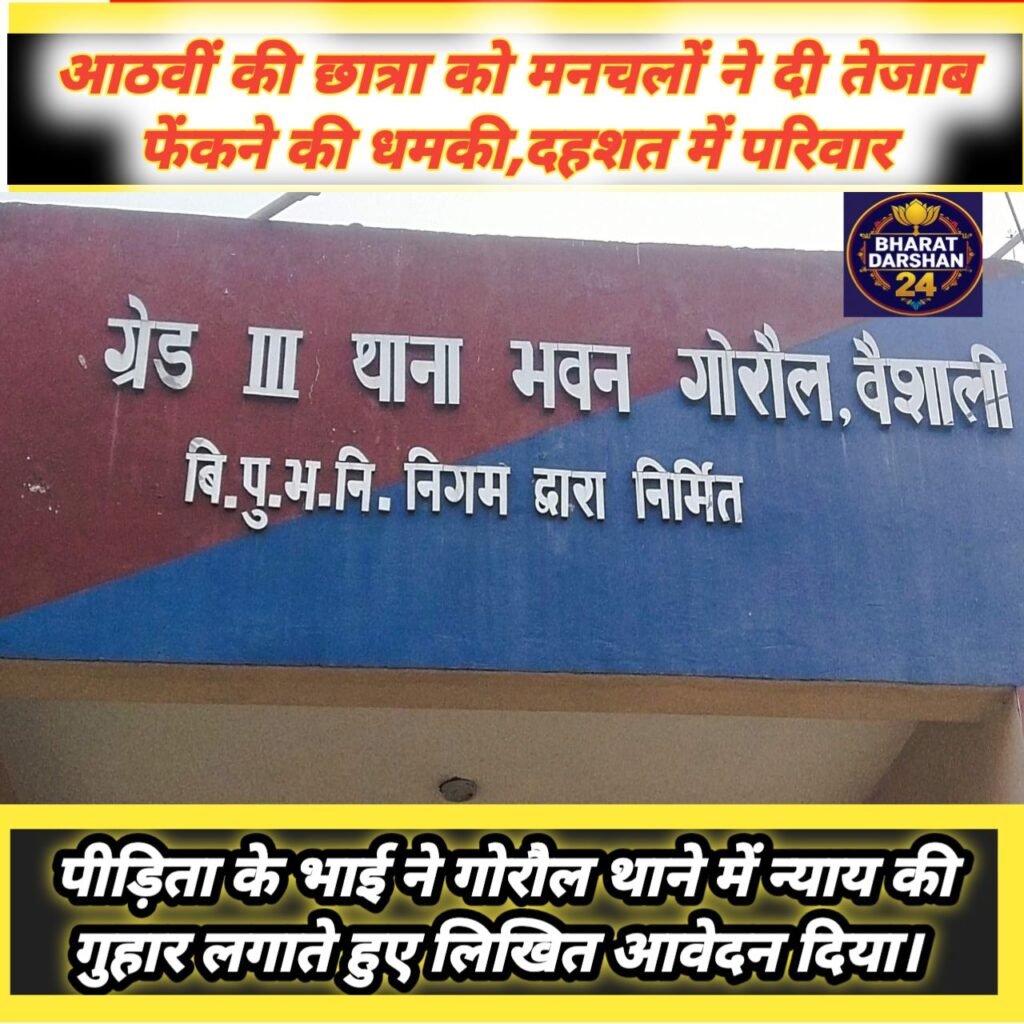गोरौल (वैशाली): बिहार के वैशाली जिले के गोरौल थाना क्षेत्र से महिला सुरक्षा को चुनौती देने वाली एक गंभीर घटना सामने आई है। यहाँ के गोरौल नगर पंचायत स्थित यूएमएस स्कूल भटौलिया में पढ़ने वाली आठवीं कक्षा की एक छात्रा के साथ असामाजिक तत्वों द्वारा सरेराह छेड़खानी की गई और विरोध करने पर चेहरे पर एसिड (तेजाब) फेंकने की धमकी दी गई। इस घटना के बाद से छात्रा और उसका पूरा परिवार गहरे सदमे और दहशत में है।
